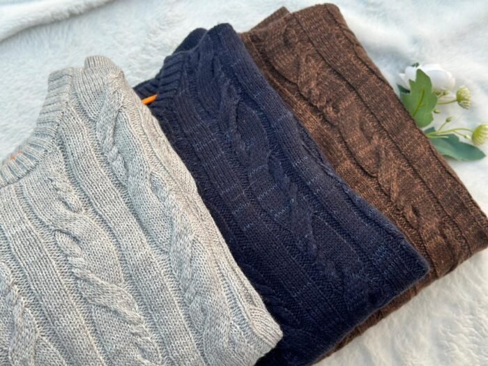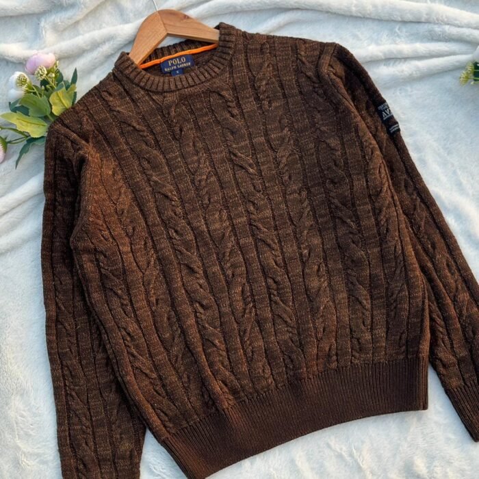 premium round neck cable knit woollen full sleeve sweater